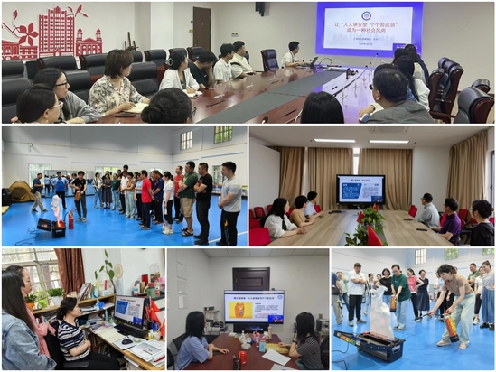 “安全生产月”期间,以习近平总书记关于安全生产的重要论述为理论指导,利用校园网、“平安上理”公众号、校园宣传栏、展板等媒介展开宣教动员。校内各部门按通知要求积极响应号召,利用部门主题会议、楼宇电视、新媒体等各种形式,积极组织本部门师生开展“安全生产月”活动,积极组织动员师生开展主题会议、集体学习、实操培训、观看主题宣传片及公益讲座等学习素材,研读安全生产法律法规、学习安全应急知识等,并按照要求留存部门学习记录作为年终安全工作考核重要依据。