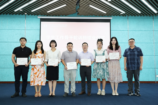 结业仪式上,各组学员代表围绕研讨主题做专题汇报。学生工作部副部长刘伟宣读2024年学生工作骨干轮训班结业名单和优秀学员名单。研究生工作部部长彭宗祥、本科生院院长甘屹分别为学员颁发结业证书和优秀学员证书。