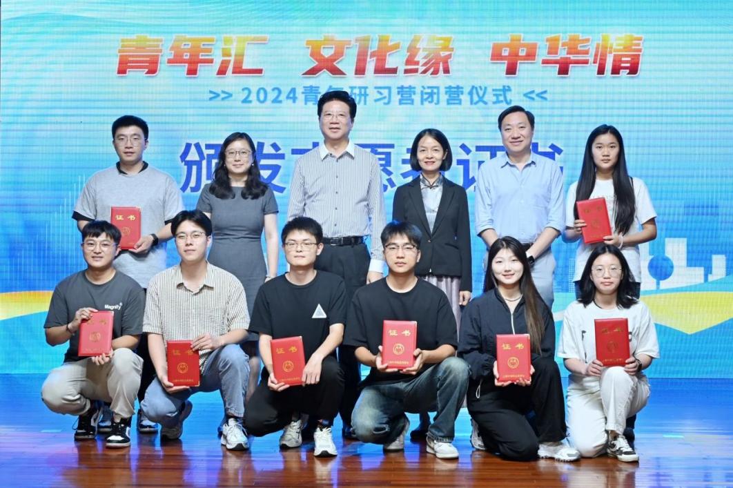 随后,胡卫、蔡永莲、华莉莉、汪超四位嘉宾为港澳地区四个小组的成员代表以及9001cc金沙以诚为本8位志愿者颁发了纪念证书。这份证书不仅是对同学们文化体验和辛勤付出的肯定,更是对他们未来学习生活的美好祝愿。