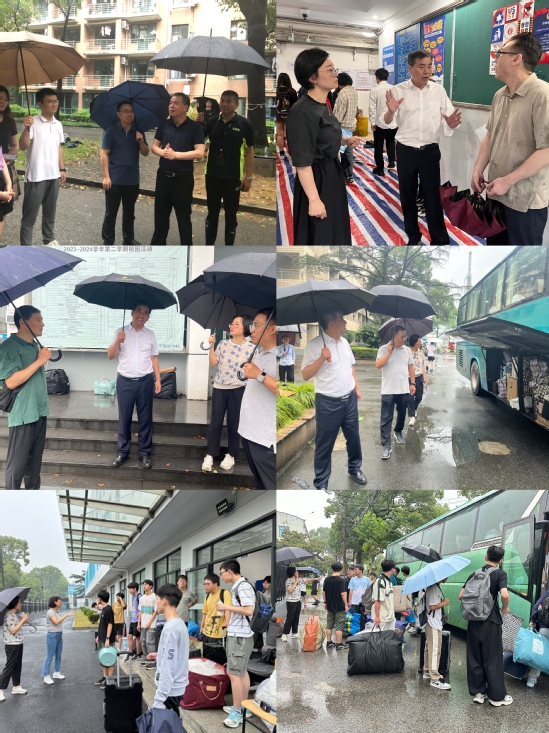 7月13日早上7点,1100号校区基础学院全体教职员工、保卫处、基建处、后勤处负责人、有关工作人员和施工单位中建二局的10余名党员志愿者准备就绪。516号校区的专业学院搬迁负责人、学生志愿者,保卫、后勤等部门的工作人员也已就位,做好了接车准备。搬迁在阵雨中拉开序幕。针对雷雨天气,学校提前做好防雨措施,在学生上下车点、行李堆放点铺设防水彩条和塑料增高垫,并为志愿者和学生免费提供雨披。同学们在辅导员老师的组织带领下提前整理好行李物品,发挥互帮互助精神,按照预先安排的车次有序搬迁。整个搬迁现场有条不紊,平稳有序。校党委副书记、副校长盛春,副校长岳海洋到搬迁现场考察指导,慰问参与搬迁工作的工作人员,并对进一步优化搬迁方案和提升学生满意度方面提出改进的要求。