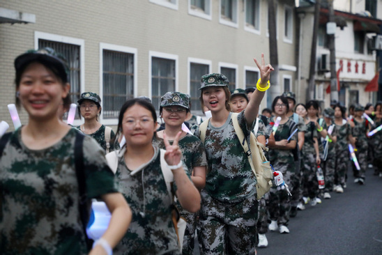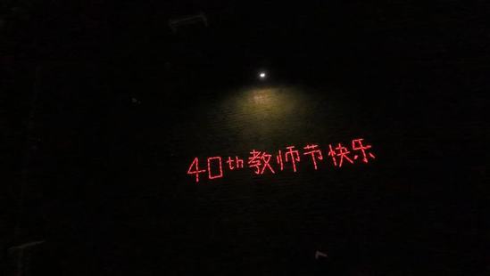拉练队伍用荧光棒摆出第40个教师节快乐
