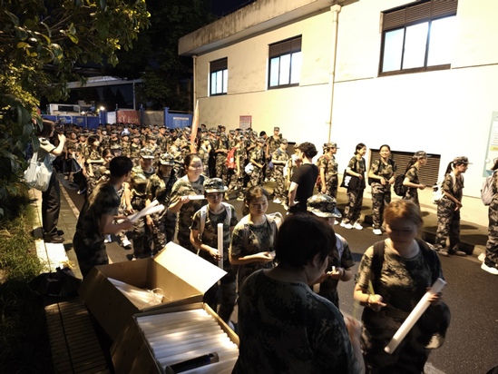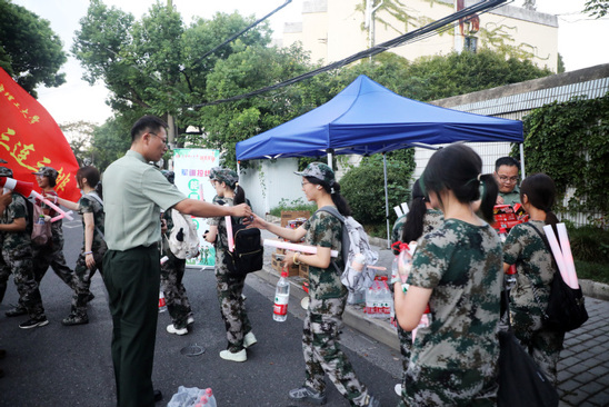 拉练前,军训工作组提前给各军训排学生发放拉练所需物资,送上温馨提示及学习资料。学习资料详细介绍了拉练沿途复兴岛、定海桥、杨树浦发电厂、中华造船厂等地标的历史脉络。军训教官帮助每位精兵突击队队员打包行李,让学生亲身实践什么叫“三横压两竖”。