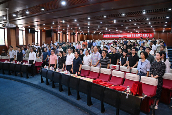 评选感动机械人物是今年机械工程学院推进师德师风建设,树立先进典型的重要举措,积极践行以教师为本的理念,大力弘扬教育家精神,推进教育强国建设,9月9日下午,学院举行第40个教师节暨教职工表彰大会,庆祝教育工作者共同的节日。校党委副书记、纪委书记赵宁出席,学校党委教师工作部、校工会、教务处等相关部门负责人应邀参加。表彰大会由机械学院党委书记刘德强主持。