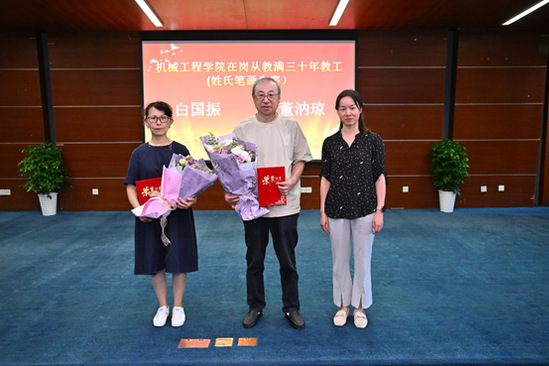 为感谢30年来坚守岗位,为教育事业、为院校发展长期以来的默默付出和无私奉献的教师,会上,学校党委教师工作部副部长郑静为学院在岗从教满30年教工献花、颁发证书。