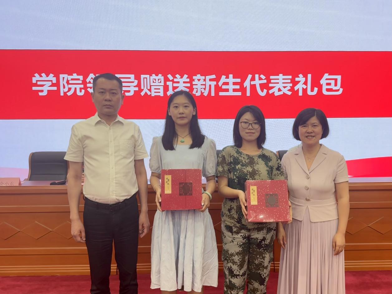 曲德强、刘芹向新生赠予礼包,不仅包含实用的学习用品,更承载着学院对新生们的深切关怀与期望。