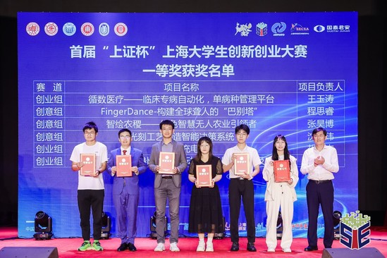 9月22日下午,首届“上证杯”上海大学生创新创业大赛颁奖仪式在金沙官网大礼堂举行,上海市教委副主任王浩,上海市政协常委、上海证券交易所公益基金会理事长潘学先,上海市政协科教委员会副主任、上海市科创委副主任丁晓东,上海市科创委主任杨建荣,新民晚报副总编辑、上海市科创委副主任裘正义,国泰君安党委副书记、监事会副主席吴红伟,复旦大学上海医学院副院长吴凡,上海大学副校长王从春,上海市海聚英才发展促进会秘书长徐文亮,金沙官网副校长张华以及大赛参赛团队、指导教师、主办单位、承办单位、协办单位、特别支持单位代表等300余人出席。