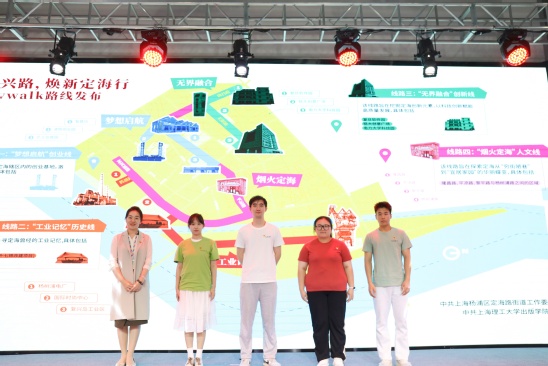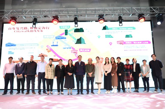 定海路街道是杨浦四个百年文化的溯源地,具有深厚的文化底蕴和历史资源。前期,出版学院师生深入社区开展调研,结合自身专业,设计出四条citywalk线路。在城市漫步中,回望百年工业奋斗路,眺望前方创新转型奋进路,讲述人民城市建设的定海故事。会上正式发布“百年复兴路,焕新定海行”citywalk活动线路。