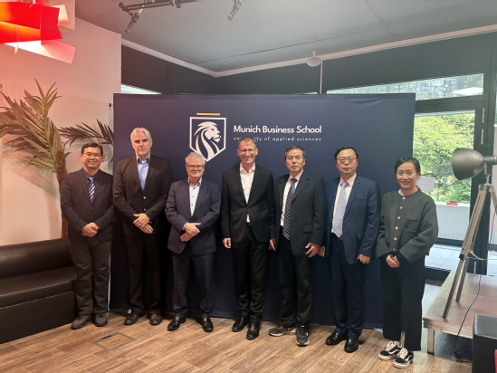 随后代表团应邀访问慕尼黑商学院,慕尼黑商学院校长Stefan Baldi、MBA主任Hans Michael Rüdiger、商学院教授Stefan Strassner等热情接待了代表团。会谈中,双方就商科国际认证情况及经验进行了深入交流,并由此初步达成签订两校合作备忘录(MOU)的合作意向。代表团还参观了校园环境和基础设施,对慕尼黑商学院的海外办学、国际学生培养及课程管理等方面进行了调研。