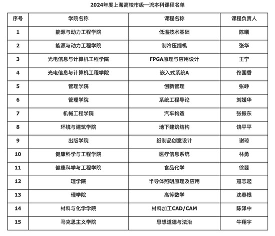 近日,上海市教育委员会公布了2024年度上海高校市级一流本科课程认定结果,金沙官网《低温技术基础》等15门课程成功入选,获批数量位列市属高校第二。截至目前,金沙官网共获批上海高校市级一流本科课程68门。