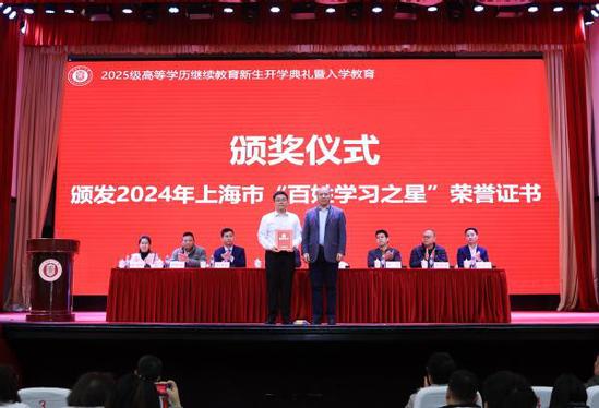 随后,单彦广为2024年上海市“百姓学习之星”获得者——包装工程专业顾俊杰同学颁发荣誉证书,表彰他在终身学习中的卓越表现。顾俊杰结合自身经历分享了他的学习心得和成长经验。