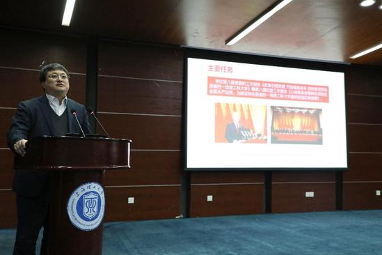 副校长张众为学院教师深入解读学校第九次党代会精神,结合学校发展大局对学院工作提出了指导性意见。他指出,学校第九次党代会明确了未来五年学校发展的总体目标和战略任务,要坚持立德树人根本任务,深化教育教学改革,推动学科交叉融合,提升科技创新能力。他要求学院充分发挥学科优势,积极融入学校发展大局,为学校“双一流”建设做出重要贡献。他还特别强调,学院要做好以下5个方面工作:一是进一步加强党建引领,推动党建与业务工作深度融合,以高质量党建引领推进高质量发展;二是加大高层次人才引育力度,实现高端人才聚集;三是深化卓越工程师人才培养体系建设,提升人才培养质量;四是增强龙头学科核心竞争力,优化学科发展布局,全力抢占学科高地;五是主动再对接国家和上海战略需求,提升服务社会能力,开展高精尖科研攻关。