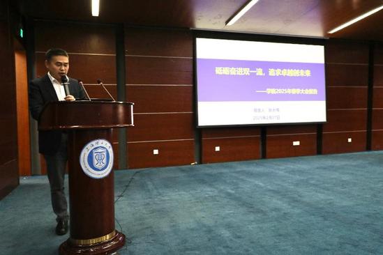庄松林充分肯定了全院师生过去一年的成绩,并对全体教师的辛勤付出表示感谢。他强调,面对新形势新任务,一是转变观念、勇于创新、加强合作,充分利用Deepseek等前沿技术开展研究,力争产出更多原创性、引领性成果;二是抓住机遇、团结协作、坚定信念,竭尽全力求发展,完成学校赋予学院的使命,在学科建设、国家级重大平台、国家科技奖项等重大成果方面实现突破;三是提高标准、对标先进、比学赶超,以“走在前列”为目标,在新一轮竞争中赢得主动。