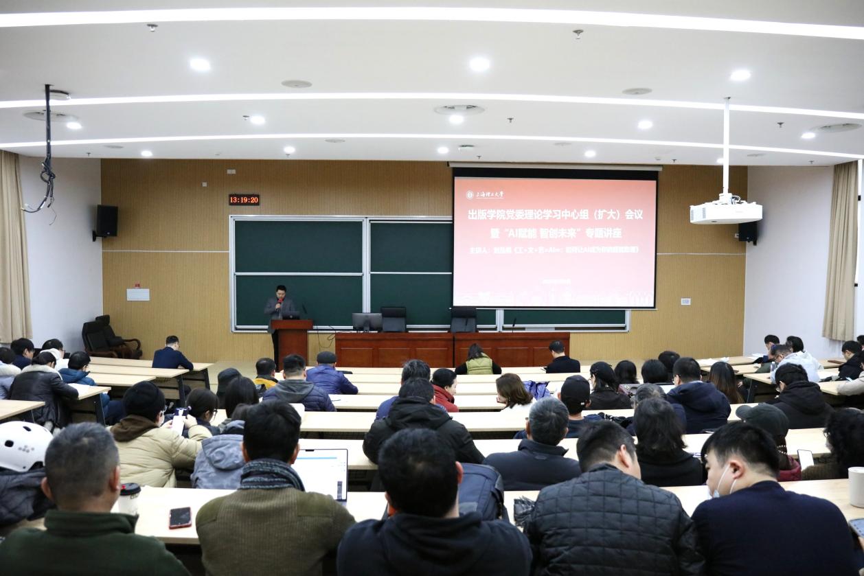 为把握人工智能技术革新为高等教育带来的发展机遇,3月4日下午,出版学院召开党委理论学习中心组(扩大)会议暨“AI赋能 智创未来”专题讲座。出版学院全体教职员工参会,副院长陶海峰主持会议。艺术设计系专业教师刘泓锐受邀担任主讲,他以“工+文+艺=AI∞:如何让AI成为你的超能助理”为题,深入浅出地为师生讲解AI工具在跨学科领域的实际应用,通过现场演示与案例拆解,生动展现了智能技术与人文艺术的创新碰撞。