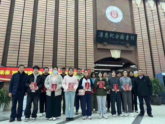 图书馆领导为学生志愿者颁发荣誉证书