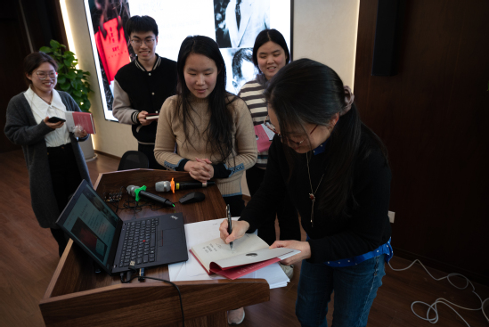 互动环节,德国文化交流中心为积极参与讨论的师生准备了特别礼物——黄雪媛老师最新翻译的希尔德·多敏诗选《只有一朵玫瑰支撑》。黄老师亲笔为获赠师生签名留念,这不仅是对思考与交流的鼓励,也为理工科学生提供了亲近德语文学的珍贵机会,使他们能在AI与人文的交叉思考之外,亲身感受文学翻译的魅力与价值。