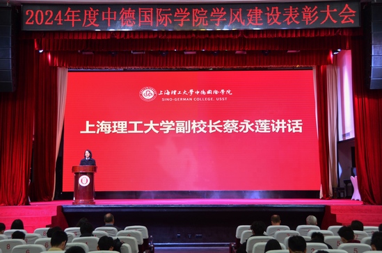 为全面落实“立德树人”根本任务,塑造良好学习的氛围,推动学院学风建设,树立高年级学习榜样,激发低年级学习动力,表彰2024学年优秀学生,3月30日,2024学年中德国际学院学风建设大会在大礼堂举行。副校长,中德国际学院院长蔡永莲,相关职能部处、学院领导出席本次会议,汉堡应用技术大学德方外教、学院教师、班主任和学生参加。大会由中德国际学院党委副书记、副院长徐芳主持。