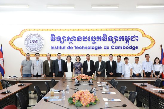 代表团在柬埔寨期间访问了柬埔寨国立理工学院、柬埔寨金边皇家大学以及柬埔寨公立崇正学校。在柬埔寨国立理工学院,代表团一行参观了机器人实验室、水处理实验室和城市建筑实验室。柬埔寨国立理工学院校长金托(P. Kimtho) 与蔡永莲分别就各自学校的基本概况和历史沿革进行了介绍,就科研合作和留学生工作进行了交流,蔡永莲代表学校与柬埔寨国立理工学院签署了校际合作备忘录。在柬埔寨金边皇家大学,校长沙利(C. Chealy)、副校长拉维(O. Ravy)率相关部门负责人接待了代表团一行,就海上丝绸之路研究中心共建、留学生基地建设事宜进行讨论,并签署了校际合作备忘录。代表团还访问了柬埔寨公立崇正学校,与华人校长高文盛会谈,并将柬埔寨公立崇正学校授牌为9001cc金沙以诚为本优质生源中学。