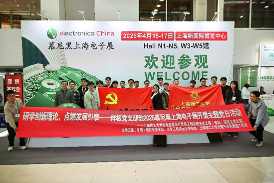 为深入贯彻落实全国两会关于推动科技创新和产业创新深度融合的重要精神,进一步拓宽研究生科研视野,增强对电子科技前沿动态的理解与认知,4月15日下午,第三批全国高校“百个研究生样板党支部”光学工程(学硕)研究生党支部联合光学工程(专硕)研究生党支部、光学工程博士生党支部及光耀三原色党建工作室共同前往上海新国际博览中心,参观2025慕尼黑上海电子展,深入学习电子信息产业发展趋势,感受科技创新澎湃动能。