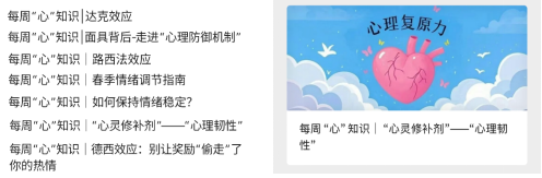 在专业知识“正心”方面,学院依托公众号开设“每周‘心’知识”科普专栏, 已推出7期内容。专栏聚焦情绪管理、压力应对等学生日常心理问题,如讲解情绪调节的深呼吸法、人际交往提升技巧,阅读量累计超700次。学生们通过阅读专栏文章,逐渐学会自我剖析情绪产生的缘由,在面对压力时能运用所学方法主动调节,正确观念得以树立,成长方向更为明晰。