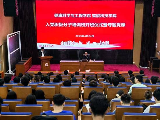 为深入学习宣传贯彻党的二十届三中全会精神和学校第九次党代会精神,教育引导入党积极分子学习理解掌握党的创新理论,进一步端正入党动机,4月24日,健康科学与工程学院、智能科技学院联合举办2025年春季入党积极分子培训班开班式暨专题党课。上海交通大学医学院党委组织部副部长、党校副校长叶福林,健康科学与工程学院党委副书记李陈财,智能科技学院党总支副书记、副院长黄华杰出席开班式。150余名入党积极分子、100余名党员代表参加学习。