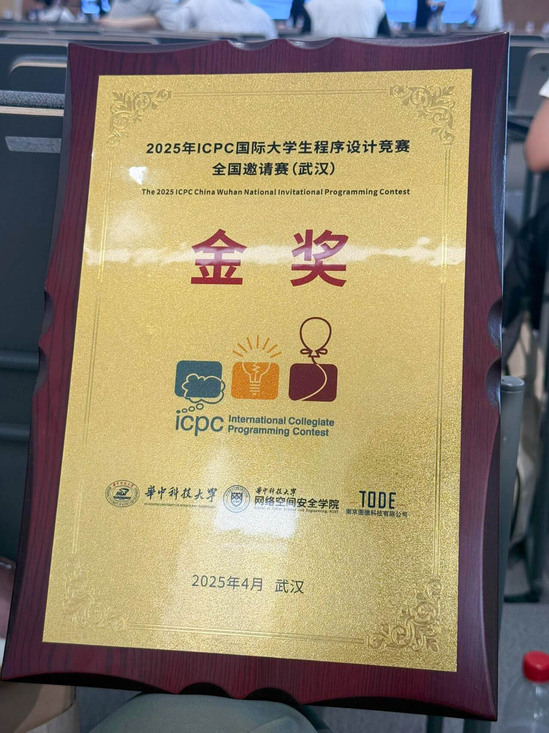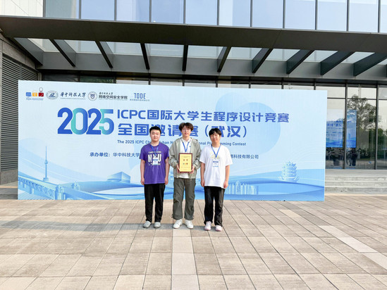 4月26日至27日,2025年ICPC国际大学生程序设计竞赛全国邀请赛(武汉)在华中科技大学举行,金沙官网“科创工坊”ACM程序设计竞赛战队(由光电学院董柯演、光电学院张皓宇、理学院吴佳霖三名同学组成)以全国高校排名第18的成绩获得金奖。这是金沙官网继2024年获得ACM-ICPC亚洲区域赛金奖后的又一佳绩。
