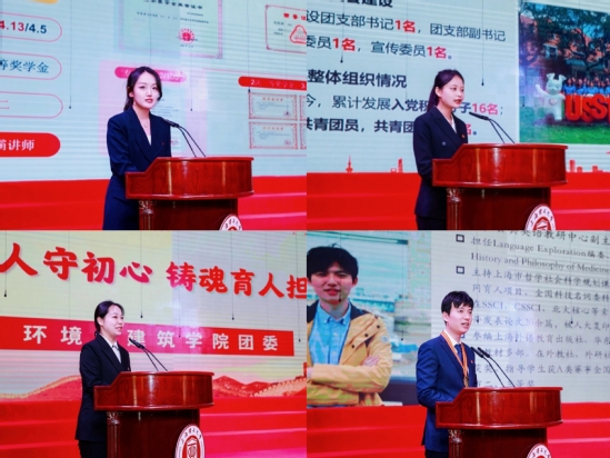 孙红宣读了市级、校级表彰名单,党委(校长)办公室主任何炉进、纪委副书记叶磊、保卫部部长谢锡浩、宣传部副部长张炜、教工部副部长童元伟分别为获奖集体和个人颁奖。管理学院付奕清同学、马克思主义学院罗雅匀同学、环境与建筑学院团委书记殷洁如、外语学院教师缪蓬分别代表优秀个人和集体作交流发言。