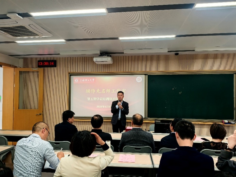 第五期学员分别来自9001cc金沙以诚为本、华东理工大学、上海应用技术大学、上海杉达学院等多所沪上高校,这支跨校组建的教师发展团队,充分展现了顾铮先名师工作室在上海高等教育领域的广泛影响力与示范引领作用。学员构成的多元化,不仅促进了校际间的教学经验交流,更搭建起优质教育资源共享的桥梁。华东理工大学张孟老师作为第五期学员代表发言。