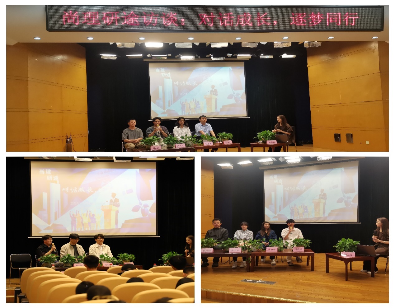 三个组别的优秀学长分别针对不同的奋斗方向为现场同学传经送宝。在互动环节,与会学子就跨考资源整合、复试应变策略等展开深度交流。活动尾声,主持人总结道:"无论是保研的厚积薄发、考研的破茧成蝶,还是寝室的共生共长,都印证着上理学子最动人的青春底色。