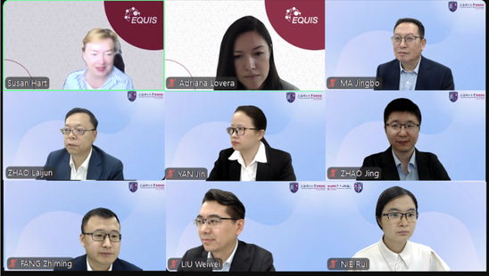 5月23日,管理学院召开EQUIS认证“在线认证资质预评估会议”(Online Briefing)。本次预评估会议由EFMD Global副主任Susan Hart教授与EQUIS质量服务发展高级经理Adriana Kudrnova Lovera组织召开,对管理学院发展状况以及是否具备EQUIS国际认证申请资格进行初步考察和评估。管理学院党委书记马静波,院长赵来军,党委副书记严瑾,副院长赵靖、房志明、刘魏巍,以及学院办公室和各系教师代表参会。