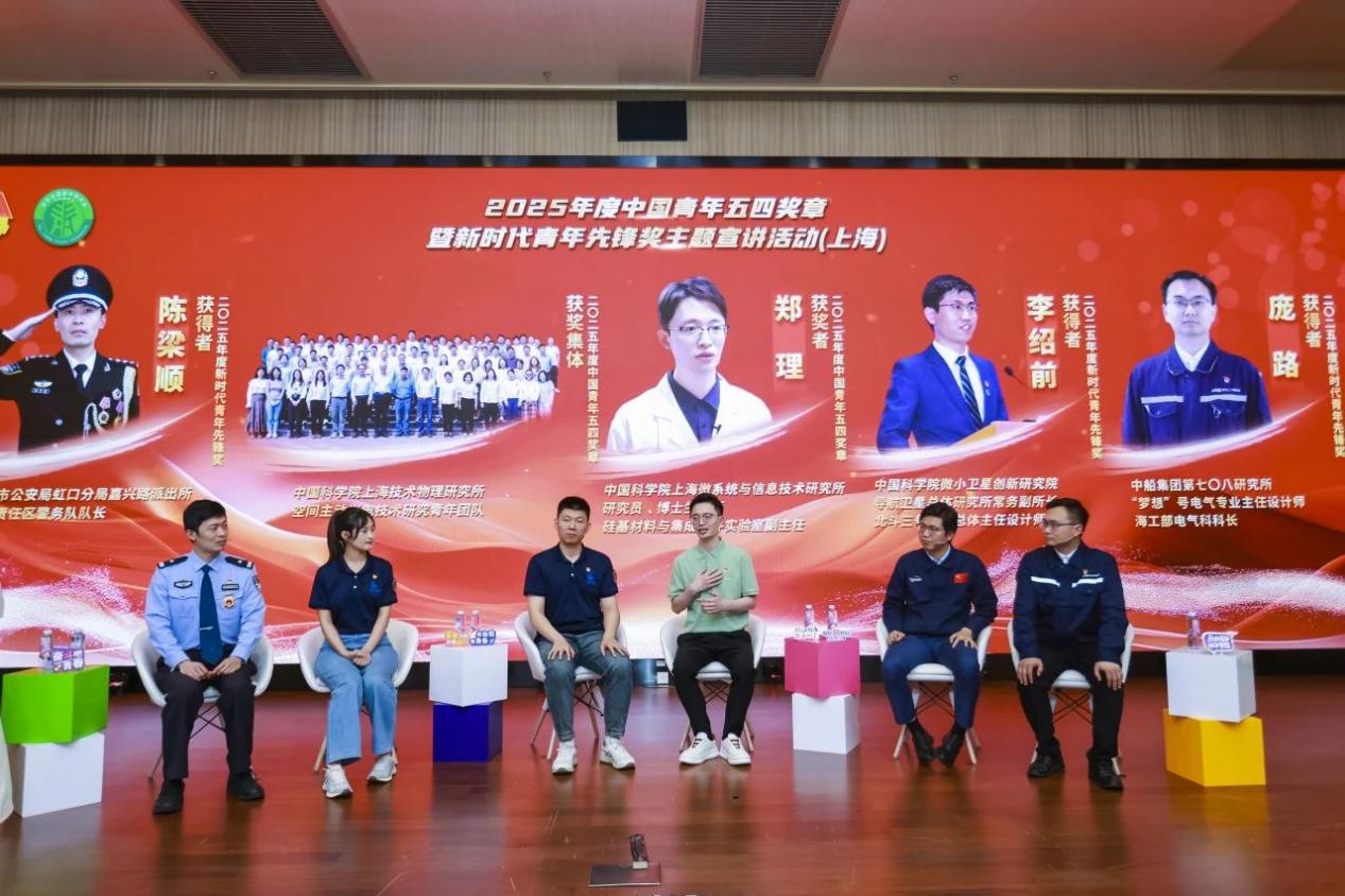 活动在2025年度中国青年五四奖章暨新时代青年先锋奖宣传片《青春向光》中拉开序幕。5组上海获奖者代表——中国科学院上海微系统与信息技术研究所研究员郑理、中国科学院上海技术物理研究所空间主动光电技术研究青年团队、上海市公安局虹口分局嘉兴路派出所第三责任区警务队队长陈梁顺、中船集团第七〇八研究所“梦想”号电气专业主任设计师庞路、中国科学院微小卫星创新研究院导航卫星总体研究所常务副所长李绍前带来事迹宣讲。来自不同科研领域和基层岗位的获奖代表结合工作中的亲身经历,将青春奋斗故事娓娓道来。演讲嘉宾还与青年观众就科技创新、职业规划等方面进行了交流探讨。宣讲会后,青马工程学员参观了中船集团第七〇八研究所展示中心,学员们深刻感受到了船海领域的飞速发展和巨大变革,也体会到在每一步的跨越背后都凝聚着无数科研人员的智慧和汗水。