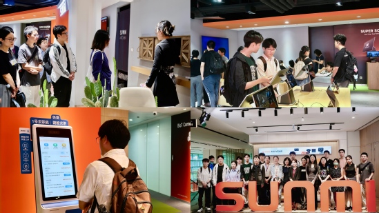 训练营还安排了学员参访创新创业文化科技融合发展的地标——大创智园区。学员们在参观中全方位领略科技的魅力,感受历史与未来的交融、领悟合作理念、了解创新生态、洞察产业发展。此外,商米科技自主研发的“1号求职机”的体验环节备受瞩目。学员在刷脸操作后,求职机凭借先进的大数据信息检索手段,自动生成专业简历,并同步推进面试邀约事宜。这种创新体验,将数字化求职从抽象的设想转化为人人都能亲身感受的真实经历。商米科技接待人员还引导学员参观了公司热门产品并与学员互动交流。