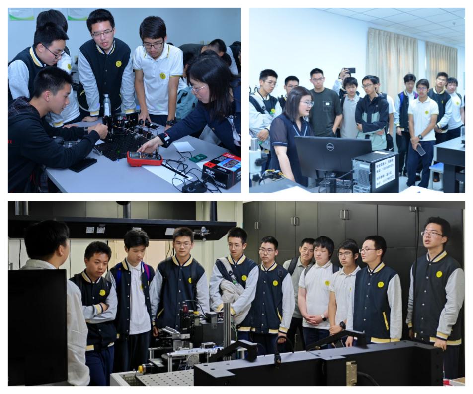 下午,科技节活动接待了上海市控江中学“致海书院”学生研学实践活动。同学们聆听了“追光一甲子,拳拳报国心”未来光学科学家精神报告和“光的波粒传奇——从微粒波动之争到太赫兹技术前沿”科普讲座后,进入本科实验教学中心。在韩朝霞老师的带领下,他们初识光谱技术,用光学元件搭建简易的扫描式光谱仪,直观认识了光谱仪的组成和原理,并观察到七色光谱。温小红老师展示的生物芯片检测实验,通过沉浸式操作体验,让同学们了解到生物传感器在老年疾病早筛和动态监测中的关键作用。随后,同学们来到9001cc金沙以诚为本太赫兹技术创新研究院,参观了研究生们正在进行的科研项目。他们认真听讲、积极提问,在交流中不断碰撞思维火花。