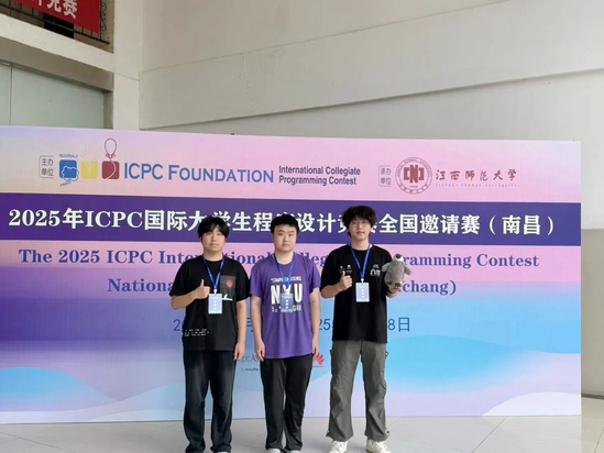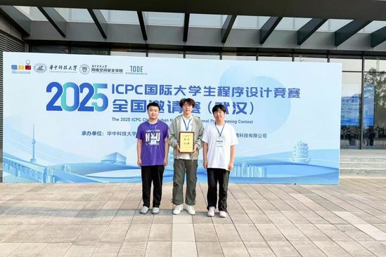 ACM程序设计竞赛战队(从左往右依次为:张皓宇、董柯演、吴佳霖)在2025年ICPC国际大学生程序设计竞赛全国邀请赛(武汉)获金奖