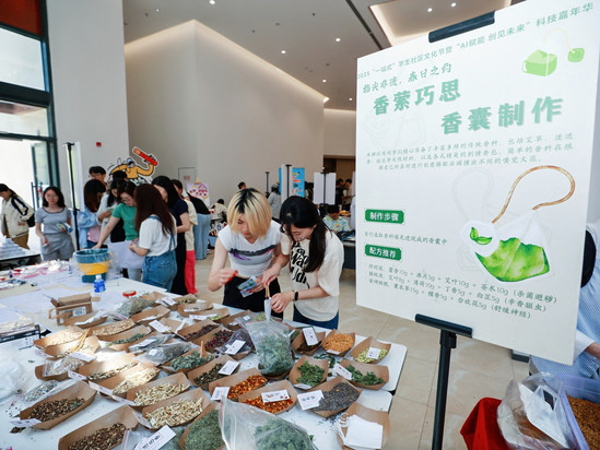 社区风采展示区展示了各学院在“一站式”学生社区建设工作的特色与亮点;科创作品展区,金沙官网VEX赛队和睿娜项目团队集中呈现学生团队在人工智能、机器人等领域的创新成果,参观者还与创作者深入交流,了解从创意到落地的完整过程,激发对科技创新的热情与向往;心理与职业发展专区中,学生自主设计的“压力共鸣网编织”“职场黑话密室挑战”等环节,吸引数百人通过创意表达释放情绪、解锁职业认知;安全教育体验区里,“4D座椅交通事故体验”“交通隐患找一找““反诈神射手“等游戏关卡,将知识竞答与情景模拟结合,让安全意识入脑入心;非遗文化创新实践区,漆扇制作、DIY香囊等活动,让同学们近距离感受非遗文化的魅力,亲手制作属于自己的非遗手工艺品,传承和弘扬中华优秀传统文化;粽情茶韵劳动体验区,师生共同学习传统粽子包法,调配创意奶茶口味,在动手实践中感受劳动乐趣;爱心集市展区汇聚陶艺作品、彩绘帆布袋、明信片等学生原创作品,特教部的小朋友们与师生开展七巧板互动游戏,让同学们在购物中传递温暖,活动筹集善款将用于支持市慈善基金会公益项目。