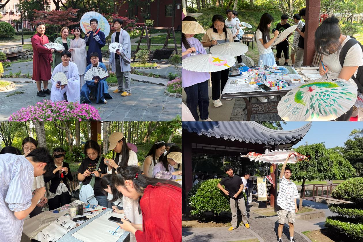 活动精心设置了四大活动板块,将经典传承与创新体验巧妙融合。在“经典重现”区,师生化身“江南四大才子”,再现风流雅趣;白蛇传的生动演绎穿越时空,营造诗情古意氛围。“巧手匠心”区则弥漫着艾草清香,师生们亲手缝制寓意安康的香粽造型配饰,在素雅纸伞上勾勒水墨画,或寄情山水,或活泼灵动,一针一线、一笔一画间,端午习俗以艺术之美浸润心田。在“龙舞端阳”体验区,学生们各自舞动着象征祥瑞的彩布长龙,感受传统民俗的魅力。在“诗韵流长”区,师生们以笔寄情,撰写端午主题诗词,将节日感悟凝于字句,感受中华诗词的永恒魅力。