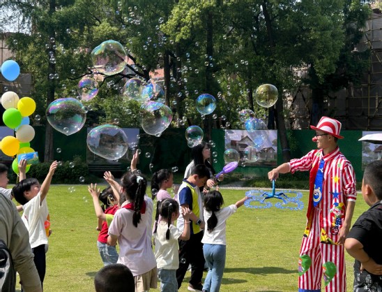 5月30日下午,北欧大草坪上童心雀跃、笑语飞扬,100余组教职工家庭齐聚一堂,参加六一儿童节教工亲子活动。活动采用集章打卡的形式,巧妙设置非遗体验区和传统运动体验区两大板块。在非遗区,孩子们沉醉于面部彩绘的奇幻变身、漏印团扇的雅致创作、中药香囊的馥郁手作以及糖画制作的甜蜜艺术;运动区则成为活力赛场,小小高尔夫、袋鼠跳小推车、蹴鞠挑战等项目妙趣横生,让孩子们在古今交融的体验中尽享运动之乐。现场气氛热烈,小丑的趣味气球互动逗得孩子们开怀大笑,而一场如梦似幻的泡泡秀更是将活动推向高潮,漫天飞舞的五彩泡泡将草坪瞬间装点成童话般的海洋,欢声笑语久久回荡。