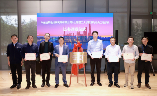 5月28日,能动学院副院长杨亮携学院重点现代产业学院执行院长陈曦、秘书长盛健、实验中心副主任陈家星一行4人前往华东建筑设计研究院有限公司(简称“华东院”),为“上海市碳中和制冷空调技术重点现代产业学院实习实训基地”揭牌暨聘任企业导师。华东院副总经理、暖动副总工程师郑兵,暖动总工程师沈列丞,第一机电工程设计研究院党总支书记、副院长陆琼文及相关业务负责人出席活动。