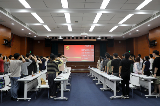 为进一步强化毕业生党员的身份认同感与使命感,以更加坚定的信念和饱满的热情投身到未来的工作与生活中,在学院组织员刘秋皊的带领下,全体毕业生党员面向党旗庄严宣誓,重温入党誓词。