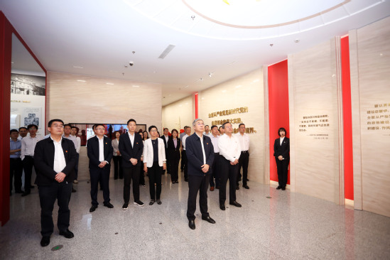 中心组一行在一块块展板前驻足,观看多媒体视频,仔细聆听讲解,体悟习近平总书记关于坚定不移全面从严治党的新要求,了解上海坚定不移推进全面从严治党的实践探索,从本市发生的违纪违法典型案例中深刻汲取教训,通过以案为鉴、以学悟纪、检身正己,进一步增强遵规守矩、砥砺作风的思想自觉和行动自觉。大家纷纷表示,这是一次沉浸式、情景式的党风廉政现场教学,是一次深刻的思想洗礼、作风检视和党性教育。贯彻中央八项规定精神永远在路上,要深入学习贯彻习近平总书记关于加强党的作风建设的重要论述,持续强化以学正风,筑牢思想根基,以钉钉子精神纠“四风”树新风,推动深入贯彻中央八项规定精神学习教育层层落实、步步深入,以优良作风凝心聚力、干事创业。