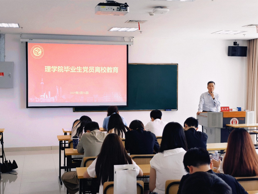 6月16日,理学院召开2025届毕业生党员离校教育,学院全体毕业生党员参与学习。孟宝全上专题党课,围绕三项核心内容对毕业生党员提出要求与期望。首先,他带领与会党员重温中央八项规定精神。他强调,党员教育重在引导对标高标准严要求。毕业生党员必须深刻理解其内涵,将“思想上入党”作为终身课题。他要求党员立足实际,敢于亮明身份,以实际行动维护党员形象。之后,结合毕业生即将开启人生新阶段的实际,他以纪念陈云同志诞辰为契机,重点阐释其“不唯上、不唯书、只唯实,交换、比较、反复”的十五字诀。他指出,作为未来的高层次人才,毕业生党员需提升运用科学思想方法和工作方法的能力,实现认知层级的跨越。他强调,面对未来挑战,核心在于思想上入党永无止境,需常学常新提升党性;关键在于运用党的创新理论复盘实践,增强学习与辩证思维能力,机遇青睐奋斗者。党课最后,孟宝全深情回顾校史院情,寄语毕业生铭记母校培养。他引用校史文献中关于校园地理位置的描述,点明学校与城市发展紧密相连的独特印记。他勉励全体毕业生党员无论身在何处,都应铭记上理人身份,深刻理解并自觉传承学校精神,以实际行动为母校增光添彩。