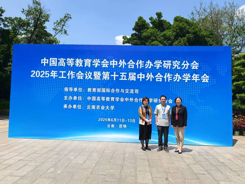 6月12日至13日,中国高等教育学会中外合作办学研究分会2025年工作会议暨第十五届中外合作办学年会在昆明举行。中德国际学院党委书记范正飞、副院长徐芳,中英国际学院副院长(主持行政工作)张峥,国际交流处中外合作办学项目主管潘涛,中德国际学院党政综合办公室主任汪玲玲等参会。