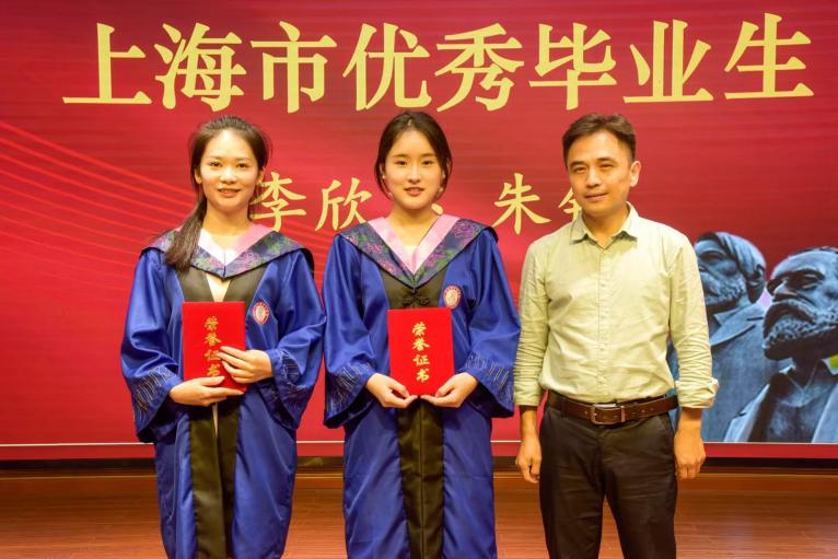 吴军宣读2025届优秀毕业生表彰名单。郭根依次为上海市优秀毕业生、9001cc金沙以诚为本优秀毕业生及马克思主义学院优秀毕业生颁发荣誉证书。