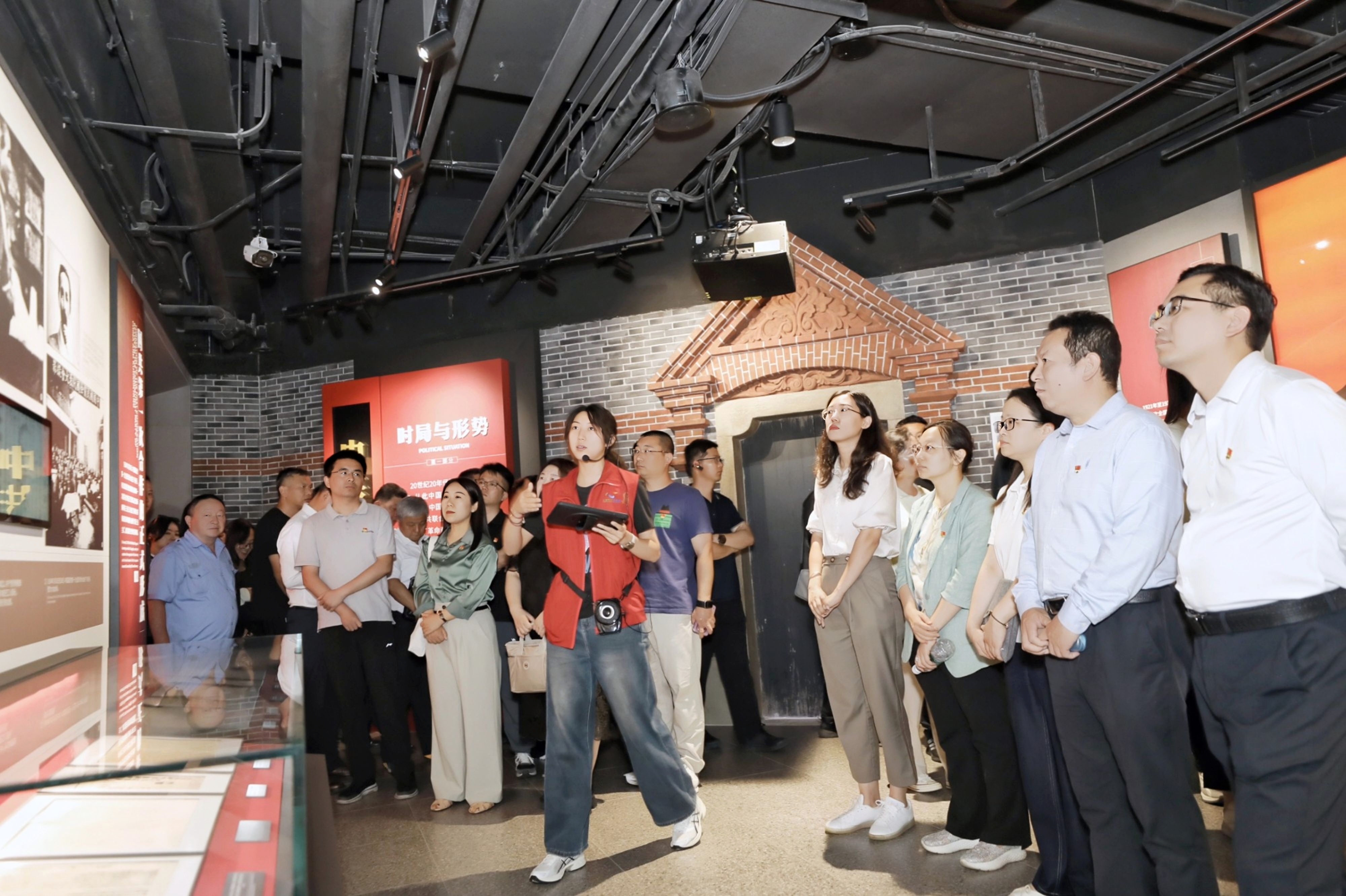 走进中共四大纪念馆,气势恢宏的主题雕塑“工农联盟”瞬间将大家带入那段波澜壮阔的红色历史中。在中共四大纪念馆馆长、管理学院公共管理(MPA)校友徐雪琛,中共四大纪念馆大学生志愿讲解员、管理学院23级会计学本科生韩艺馨和陈心元讲解引导下,大家通过文献、实物与场景复原,深入了解中共四大召开的时代背景、筹备工作与召开过程,在扎实的史料呈现中,学习领会中国共产党早期组织建设、思想发展与理论探索的历史脉络,系统回顾中共四大的重要历史意义与时代价值,深刻了解革命先驱筚路蓝缕、开辟新局的艰辛历程,深切感悟我党初创时期共产党人的坚定信仰和艰苦奋斗、不屈不挠的精神。