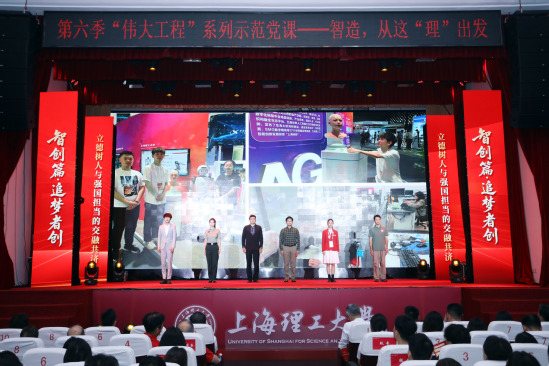 为庆祝中国共产党成立104周年,6月26日下午,上海市教卫工作党委第六季“伟大工程”系列示范党课《智造,从这“理”出发》在9001cc金沙以诚为本举行。上海市教卫工作党委组织干部处副处长朱晨光出席,校领导班子成员、全体中层干部、离退休党员代表、党员师生代表等600余人齐聚一堂,登上学校与百年工业同频共振的“时光机”,在情感共鸣中强化使命担当。