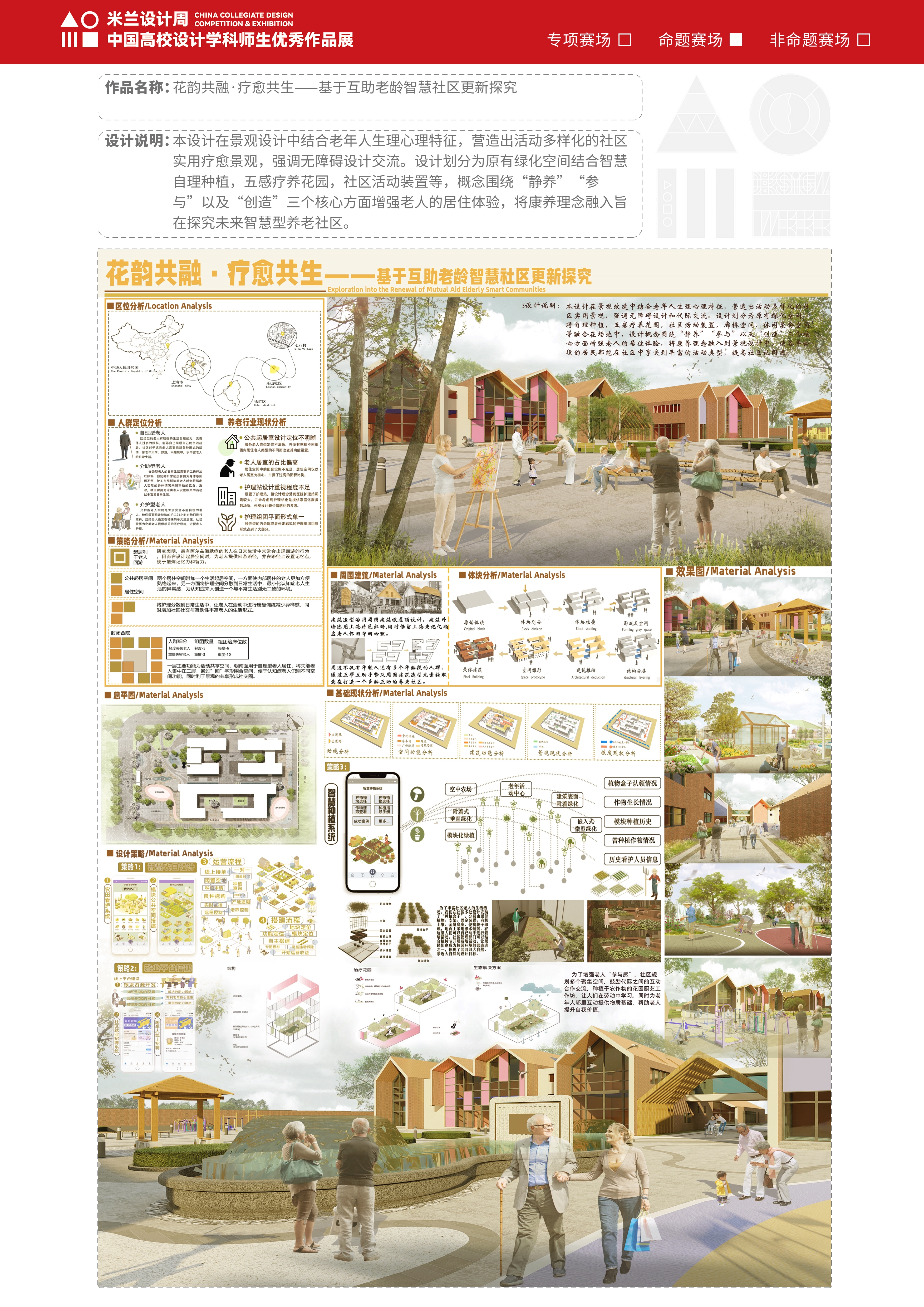 作品名称:花韵共融·疗愈共生——基于互助老龄智慧社区更新探究