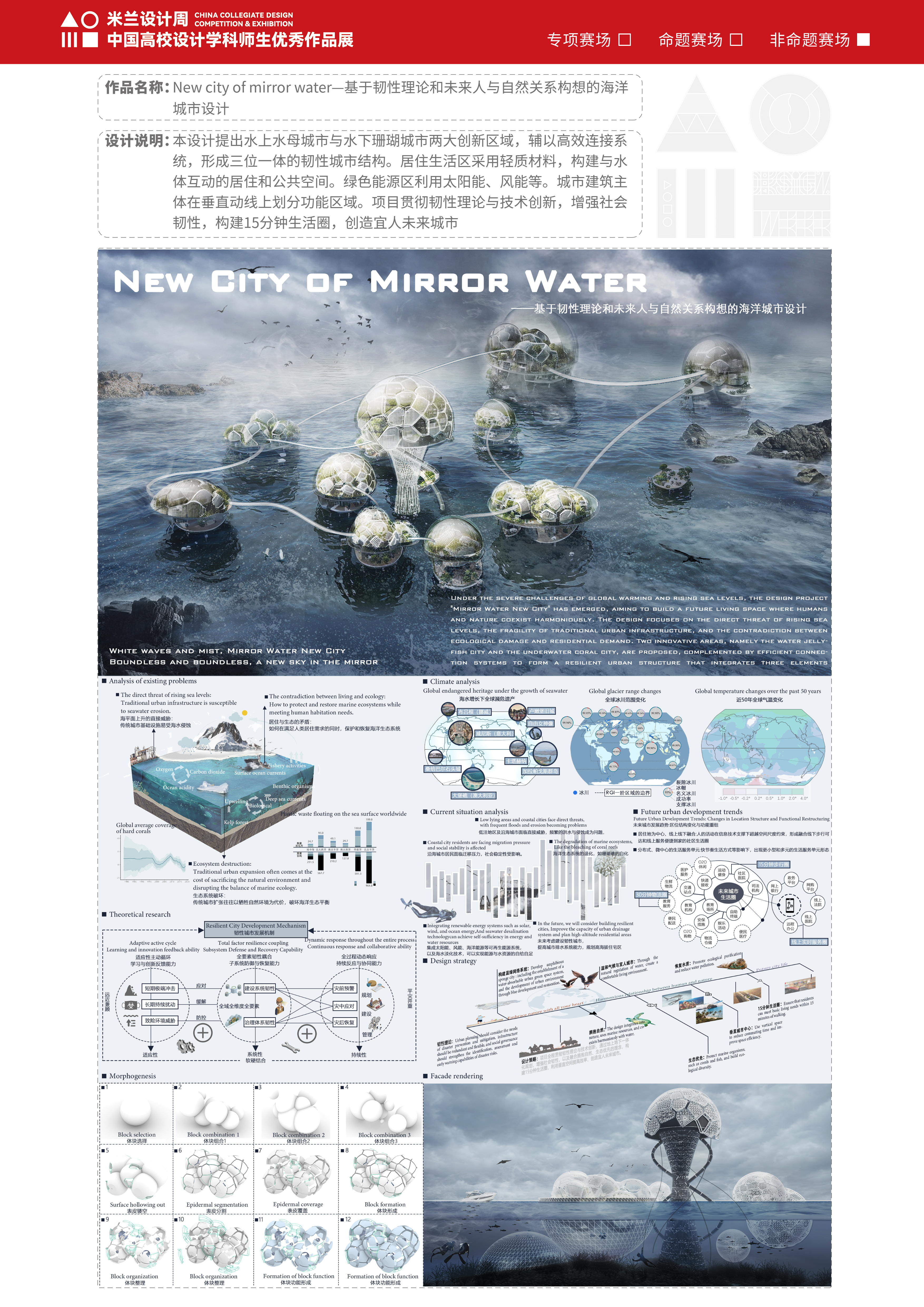 作品名称:New city of mirror water—基于韧性理论和未来人与自然关系构想的海洋城市设计