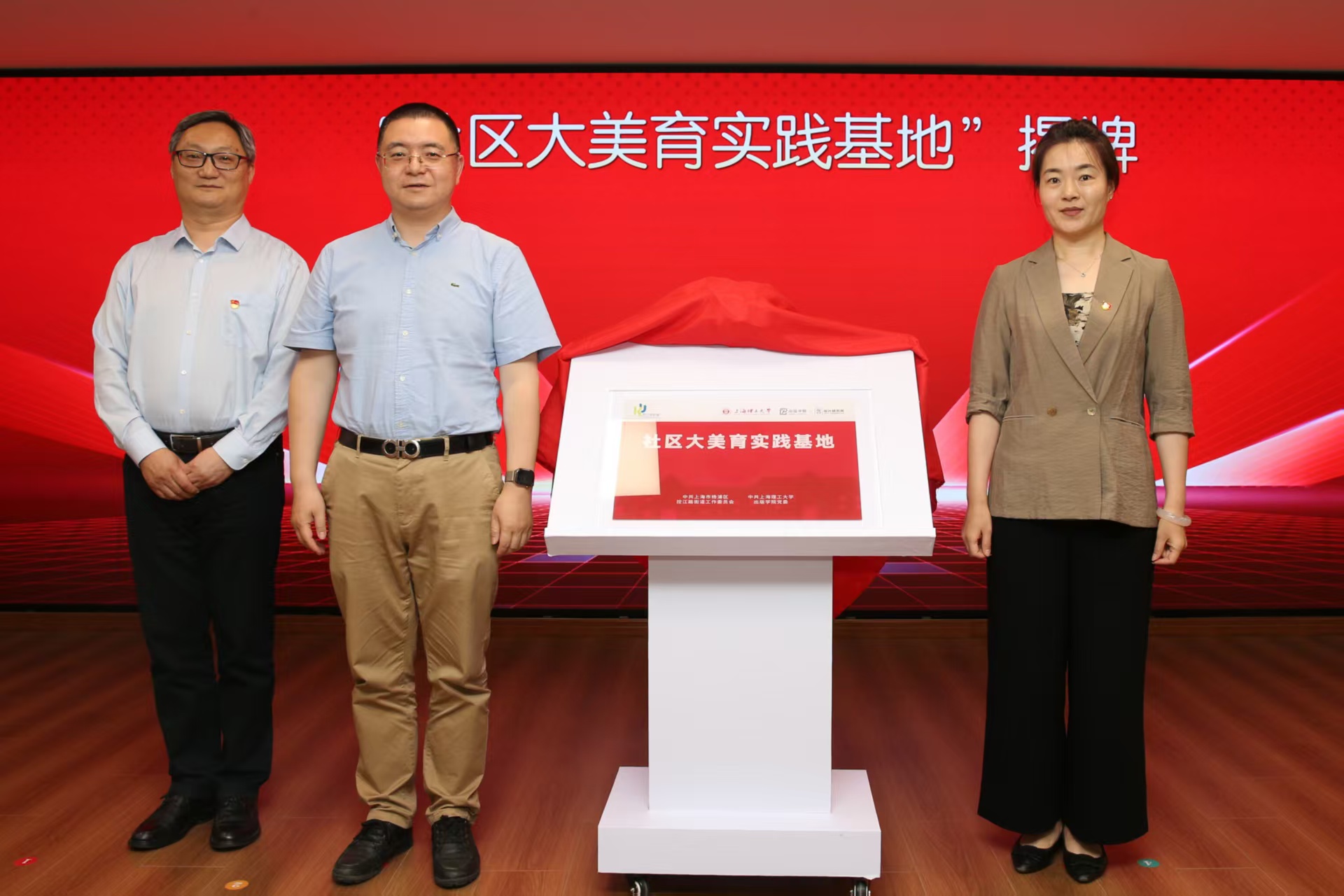上理出版学院、凤城巷园区和控江路街道代表共同为大学生“创新、创意、创业”孵化基地、“社区大美育实践基地”揭牌。