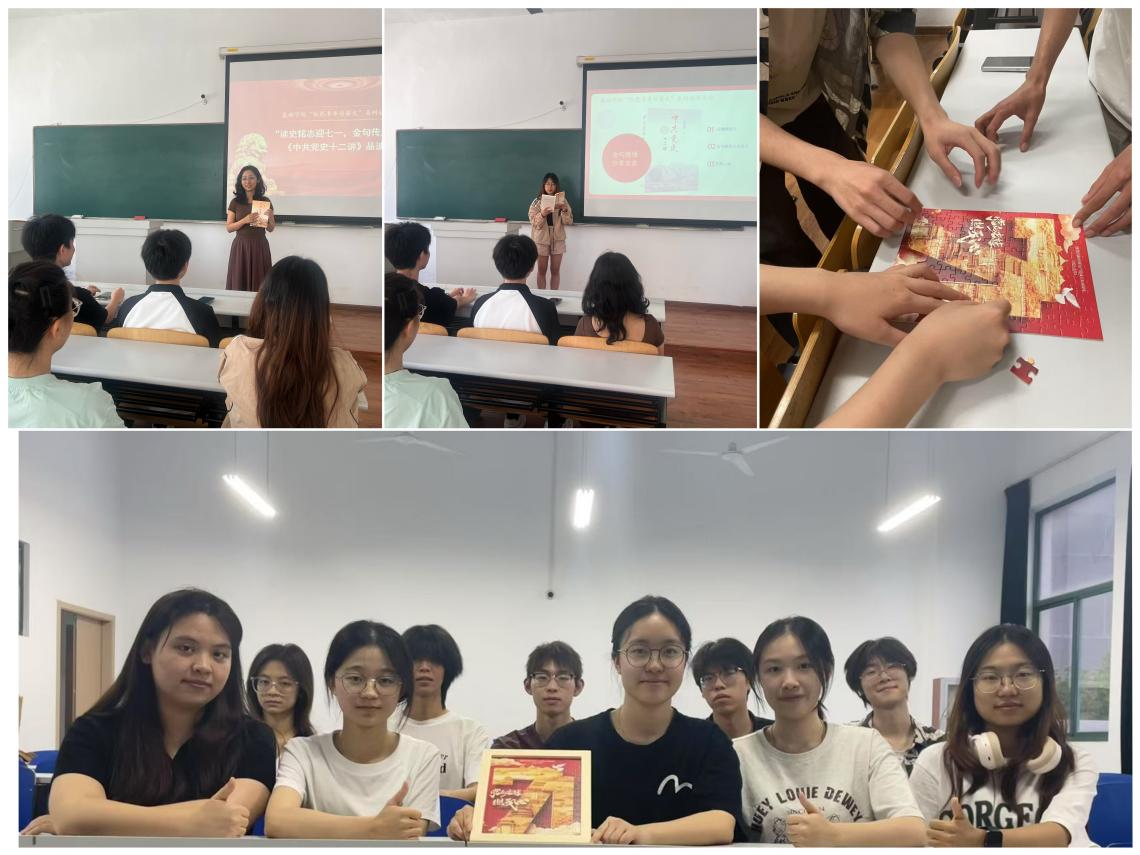 拼图协作环节中,全体同学共同拼接建党104周年主题海报。当象征奋斗历程的画面逐渐完整,同学们在实践中体悟“团结就是力量”的真谛。