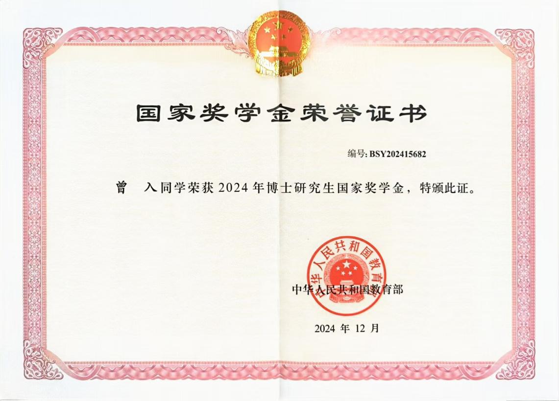 曾入博士荣获CSC留学资格、国家奖学金、2023ICUIC最佳学生论文奖