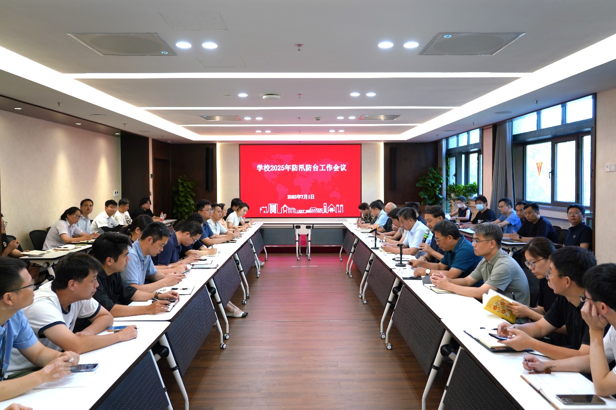 7月1日,学校2025年防汛防台工作会议在勤业楼207会议室召开,副校长岳海洋出席会议并讲话,会议由后勤处处长刘威主持。学校防汛防台应急处置工作小组成员单位相关负责人,各部门、学院治保主任参加会议。
